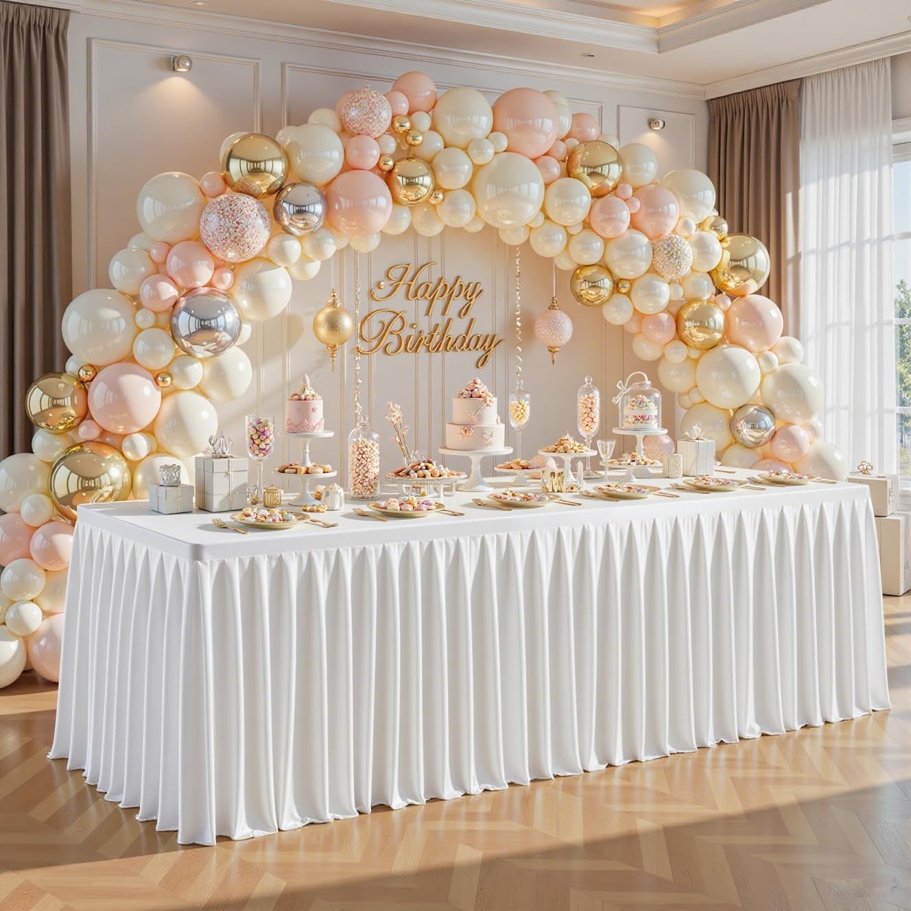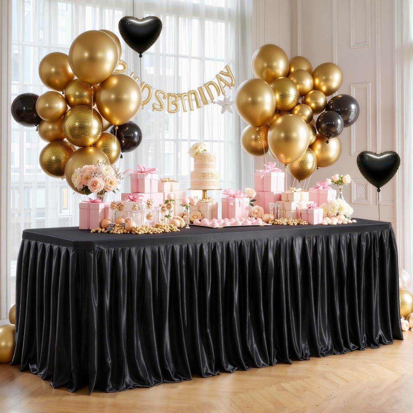 | Included Components | 6ft rectangle tablecloth, 6ft table skirt, black party table skirt, black table skirt, desk table skirt |