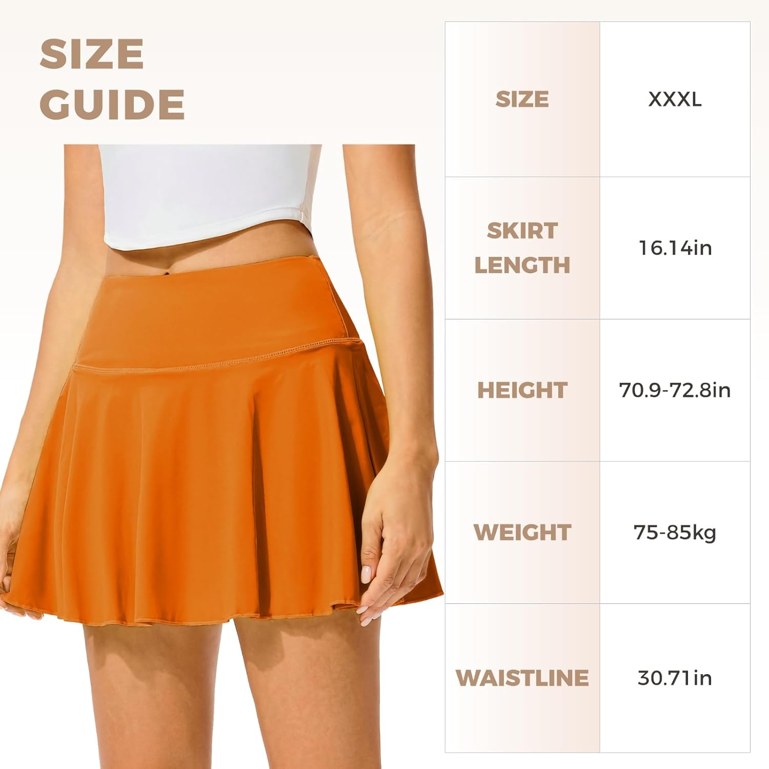 Color:orange Material:nylon + spandex Product Size: 30.71 in x 7.87 in x 1.18 in Package Includes:tennis skirts for women x 1 Note: - Please refer to the measurement. Tiny measuring error is allowable in normal range. - There might be a little color difference due to the monitor, camera or other factors, please refer to the physical item.