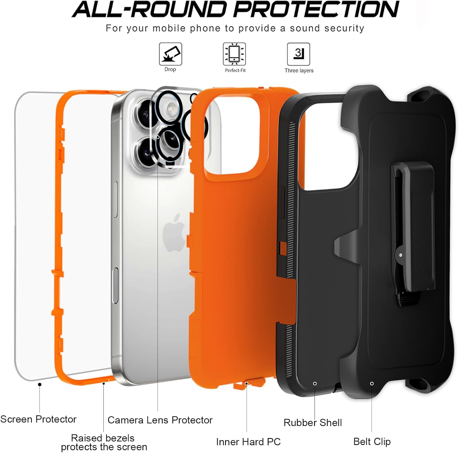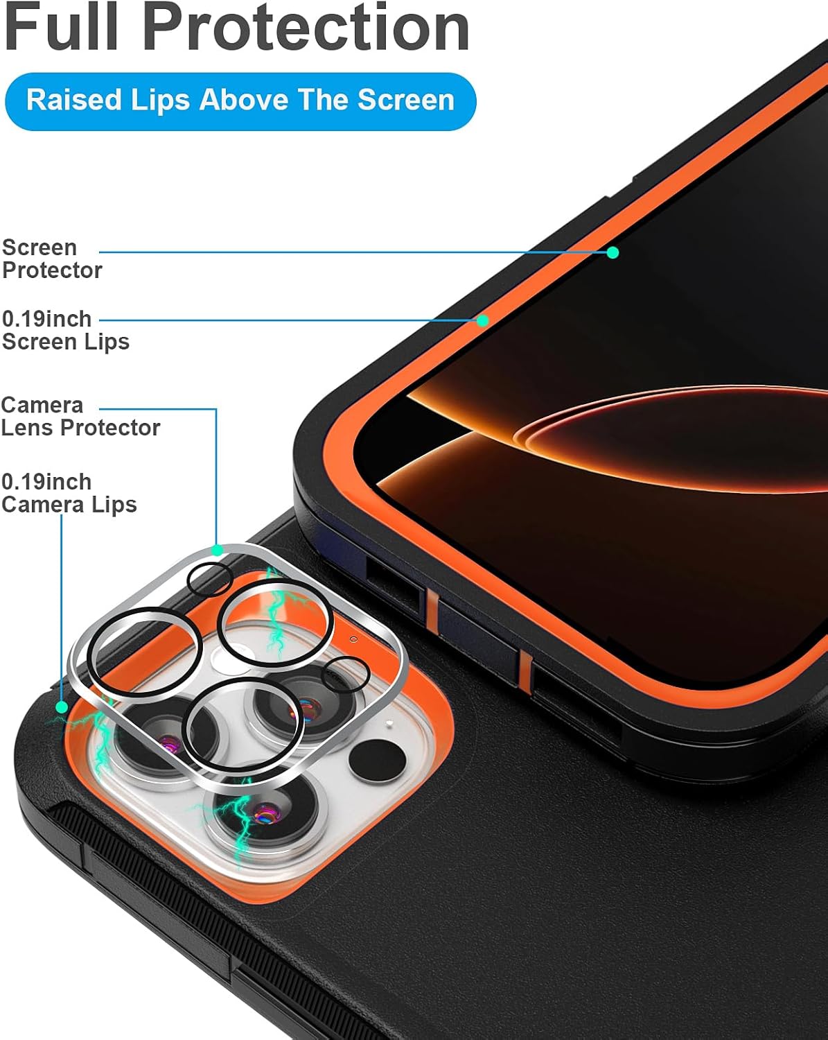 | Additional Features | Built-in Screen Protector, Camera Lens Protector, Heavy Duty Protection, Kickstand |