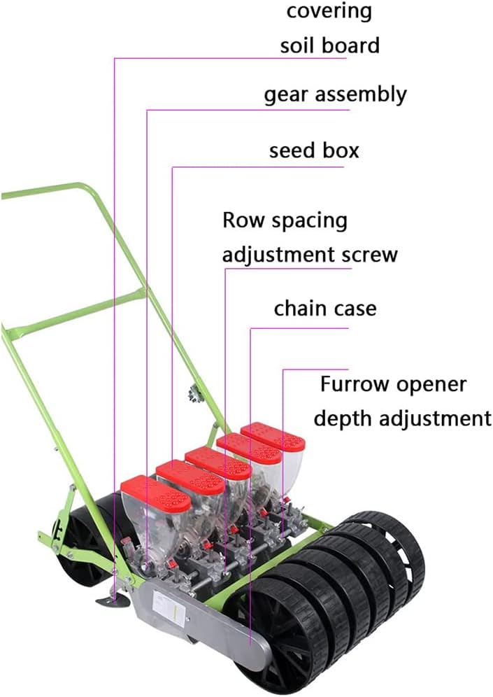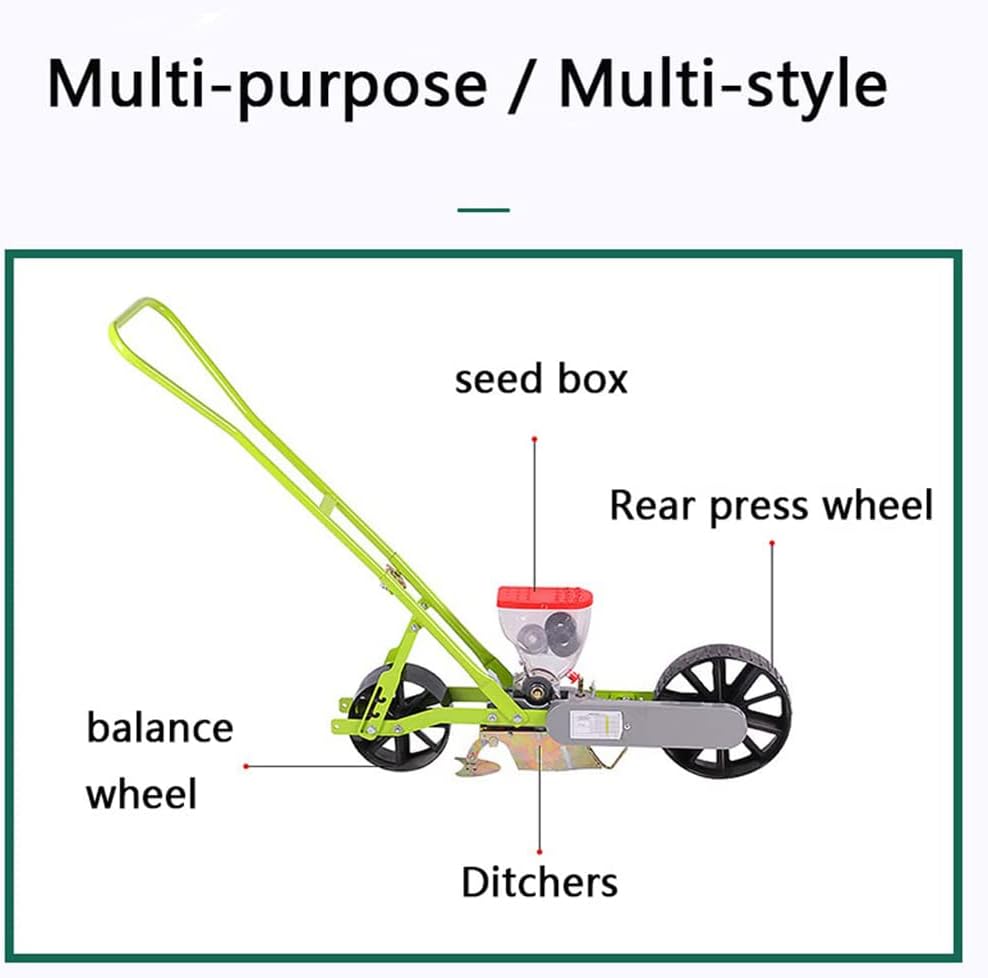 Features:The spreader is a sturdy, practical helper that you can use to sow seeds.Lightweight and convenient: suitable for terraced fields, hillsides, intercropping fields, and field supplementing seedlings.suitable for terraces, hillsides, intercropping, field watering, etc., the easy-push design makes it easy to roll on the cultivated dirt, and the convenient stand helps keep it stable when not in useSpecification:Product name: Hand-push roller seeding and fertilizer applicatorProduct Parameters:Type: PlanterApplicable objects: Coriander Cabbage RadishProduct Type: Brand NewNumber of lines: 5PackageColor: GreenSize:90*59*35 cmPacking list:1x Vegetable SpreadersNote:Due to the different colors of the brightness of the display and the light, the actual color may be slightly different from the picture.Due to manual measurement, please allow 0-2cm error. Thanks for your understanding.