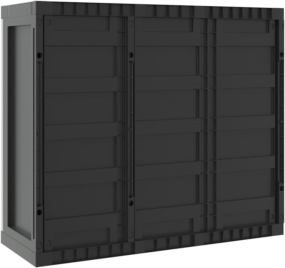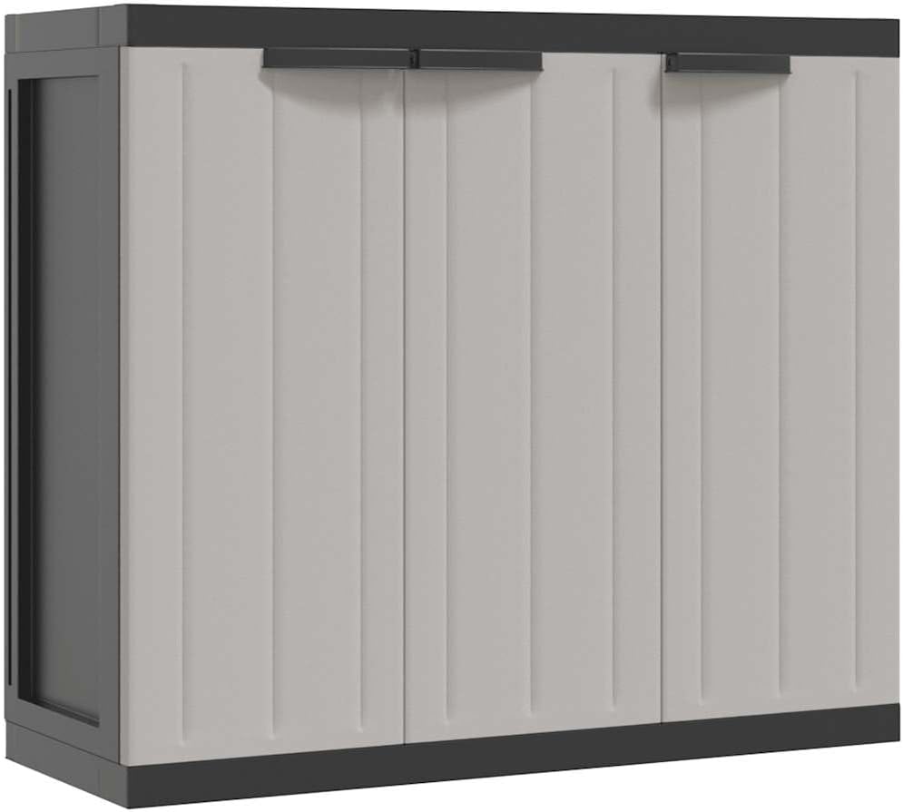 This outdoor storage cabinet is the perfect mix of style, function, and versatility, making it a top choice for anyone wanting to tidy up their outdoor spaces. With a trendy design that mixes gray and black, it not only offers plenty of storage but also enhances the look of your garden or balcony, keeping your stuff organized and attractive.