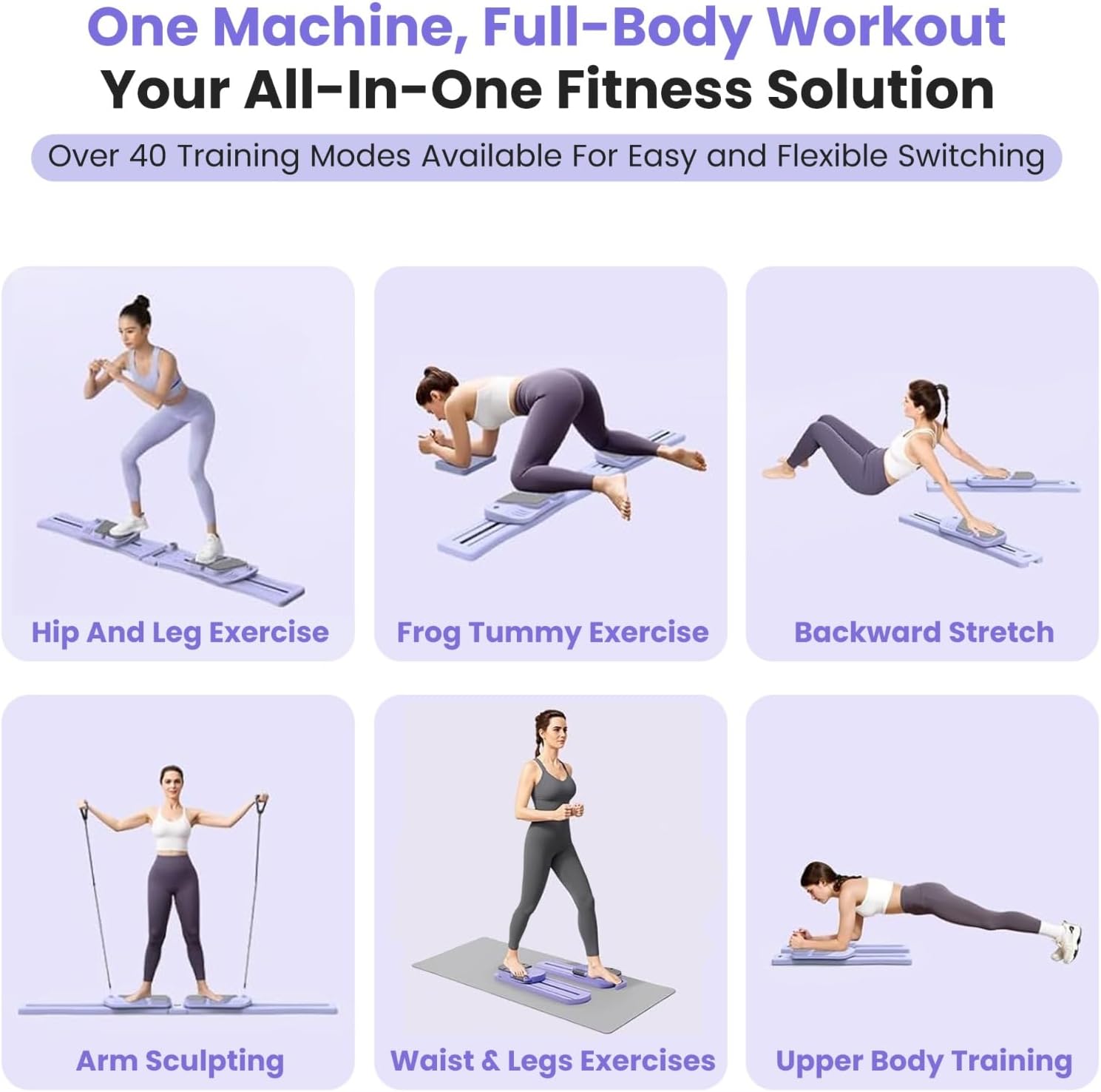 The MILENTII 7-in-1 Pilates Board is a multifunctional home workout system engineered for full-body strength training, core activation, and muscle toning. Designed for both men and women, this portable Pilates reformer helps improve abdominal definition, posture control, glute strength, and lower-body stability — all in one compact fitness device. Featuring an extended thickened slide rail and smooth bearing rollers, the board provides controlled sliding resistance that continuously activates your core muscles. Exercises such as plank slides, alternating leg drives, side squat slides, and inner thigh movements enhance rectus abdominis engagement and improve balance and coordination. Constructed from durable PP material (Model A-001), the board supports up to 150KG with a stable load-bearing pedal structure. The detachable armrest allows for supported upper-body exercises and added balance control. A built-in LED timer and smart counter help track your progress, ensuring structured and efficient training sessions. Perfect for home gyms, small spaces, and busy lifestyles, the MILENTII Pilates Board transforms your living space into a full-body training environment without the need for large machines or complicated setups.