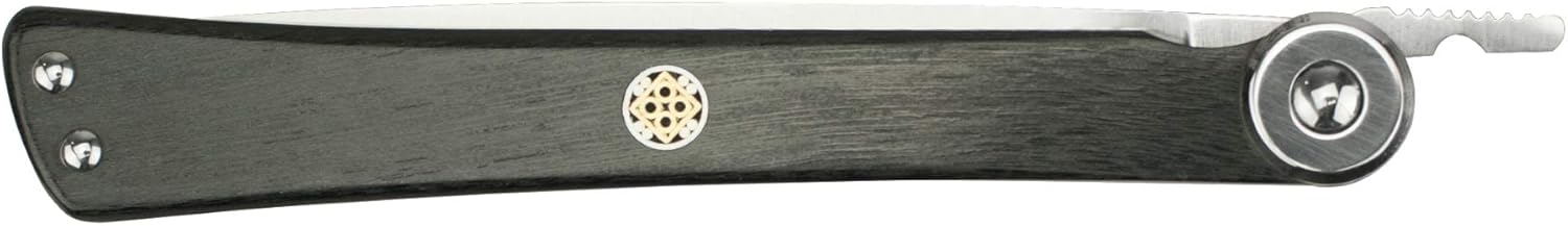 The Shun Higo No-Kami 3.5-inch Personal Steak Knife is a beautifully crafted folded knife designed to be used as a gentleman’s knife or pocket knife. First manufactured in 1896 in Meiji-era Japan, this style of knife is considered to be the first Japanese pocket knife. Featuring a VG10 stainless steel blade, this Shun Steak knife offers exceptional sharpness with a precise 16-degree edge. The ebony Pakkawood handle ensures a comfortable, secure grip with a glossy finish and an inlaid mosaic crest for added elegance. Supported by free sharpening and honing. Handcrafted in Japan, the Shun Higo-No Kami Personal Steak Knife embodies centuries of knife-making expertise and a commitment to superior quality.