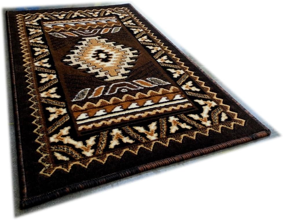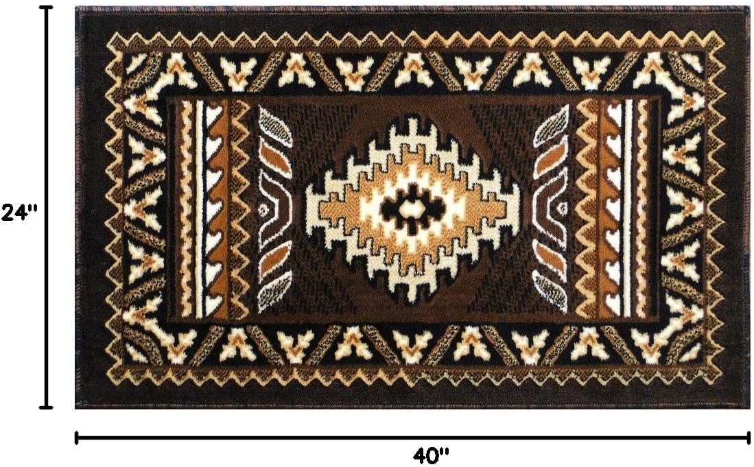South West Native American Mat Area Rug Design Kingdom 143 Chocolate (24 Inch X 40 Inch) Mat
