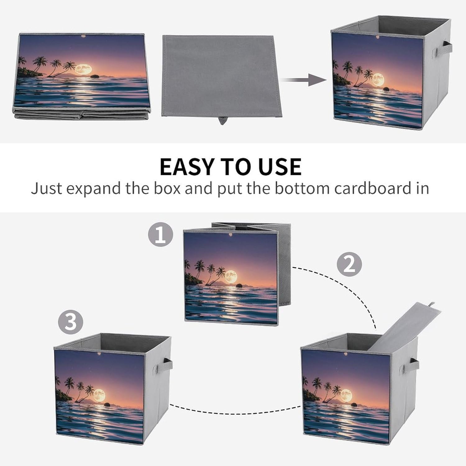 This foldable storage box is made of high-quality oxford cloth fabric with a sturdy structure, durable and will not easily scratch items. There are a variety of patterns to choose from, beautiful and lightweight, keeping your home items tidy and organized.Save on space when not in use and fold flat for easy storage, assembles in seconds. Features sturdy handles for easy transport lightweight and durable. Great for toys, books, linens, clothes, shoes, holiday ornaments, and more in the home or office.Can be used to bedroom organizing basket, laundry storage box, toy organizers box, bathroom towel cube storage bin, toilet storage container, book magazine organizer, holiday ornaments storage cubes, living room storage, and many other uses.